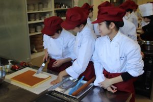 本校のキッチンスタジオでロールケーキを作りながら、お菓子作りの基礎や楽しさを教えていただきました。